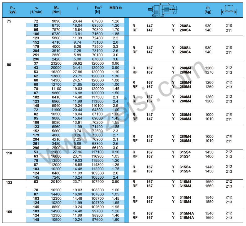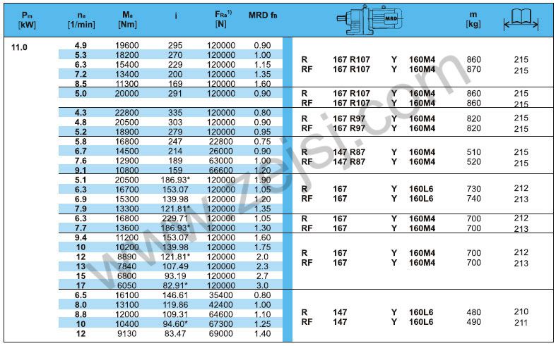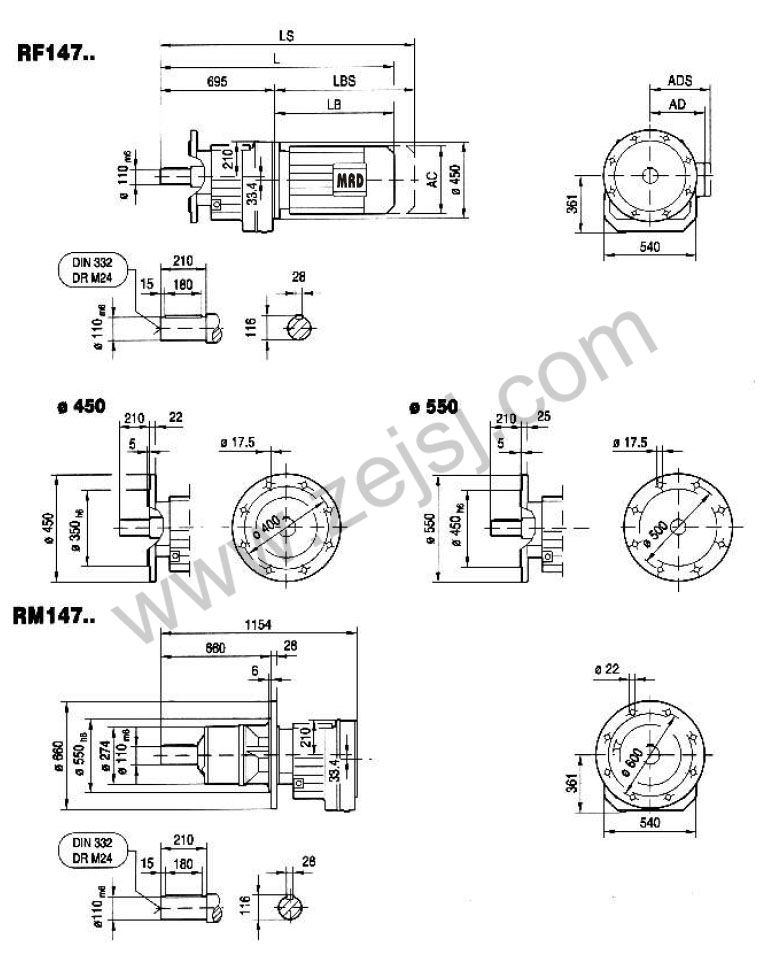 R…F:底腳法蘭安裝 RM: 法蘭安裝帶加長軸承箱