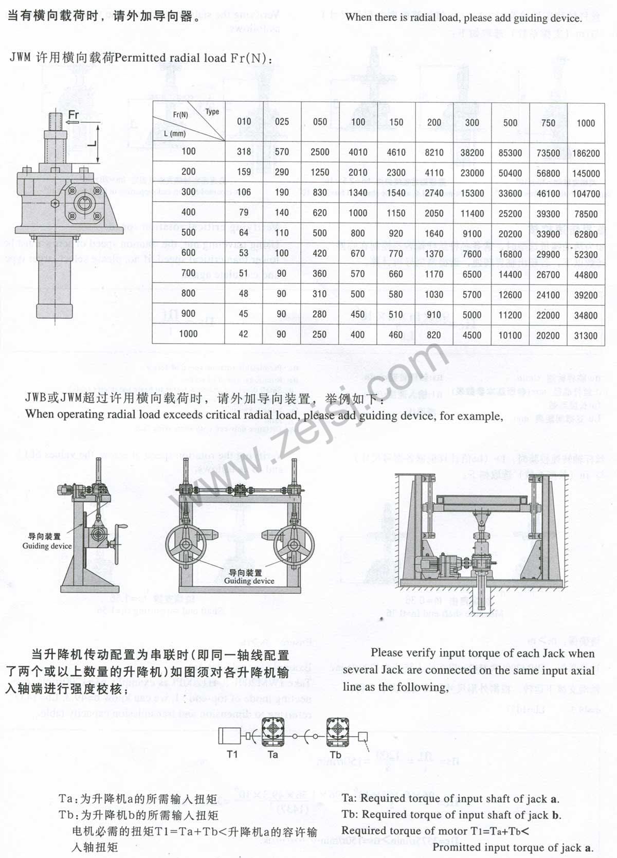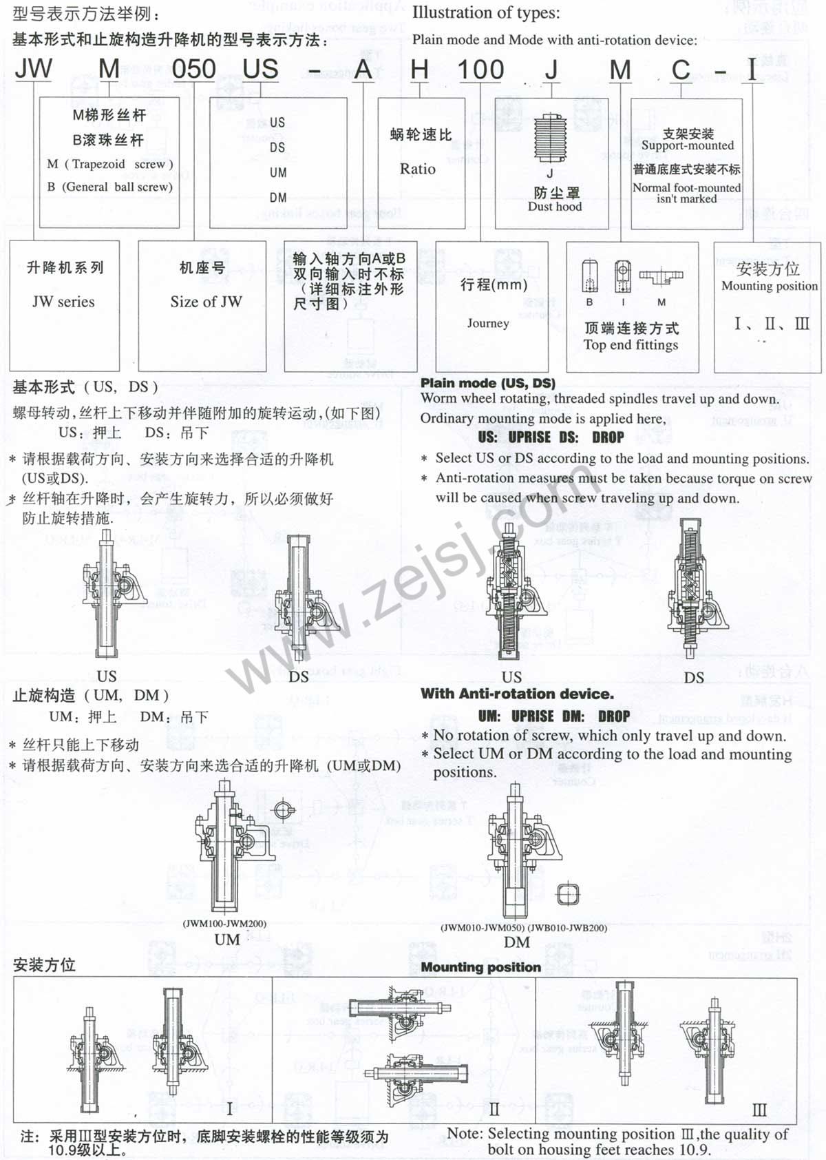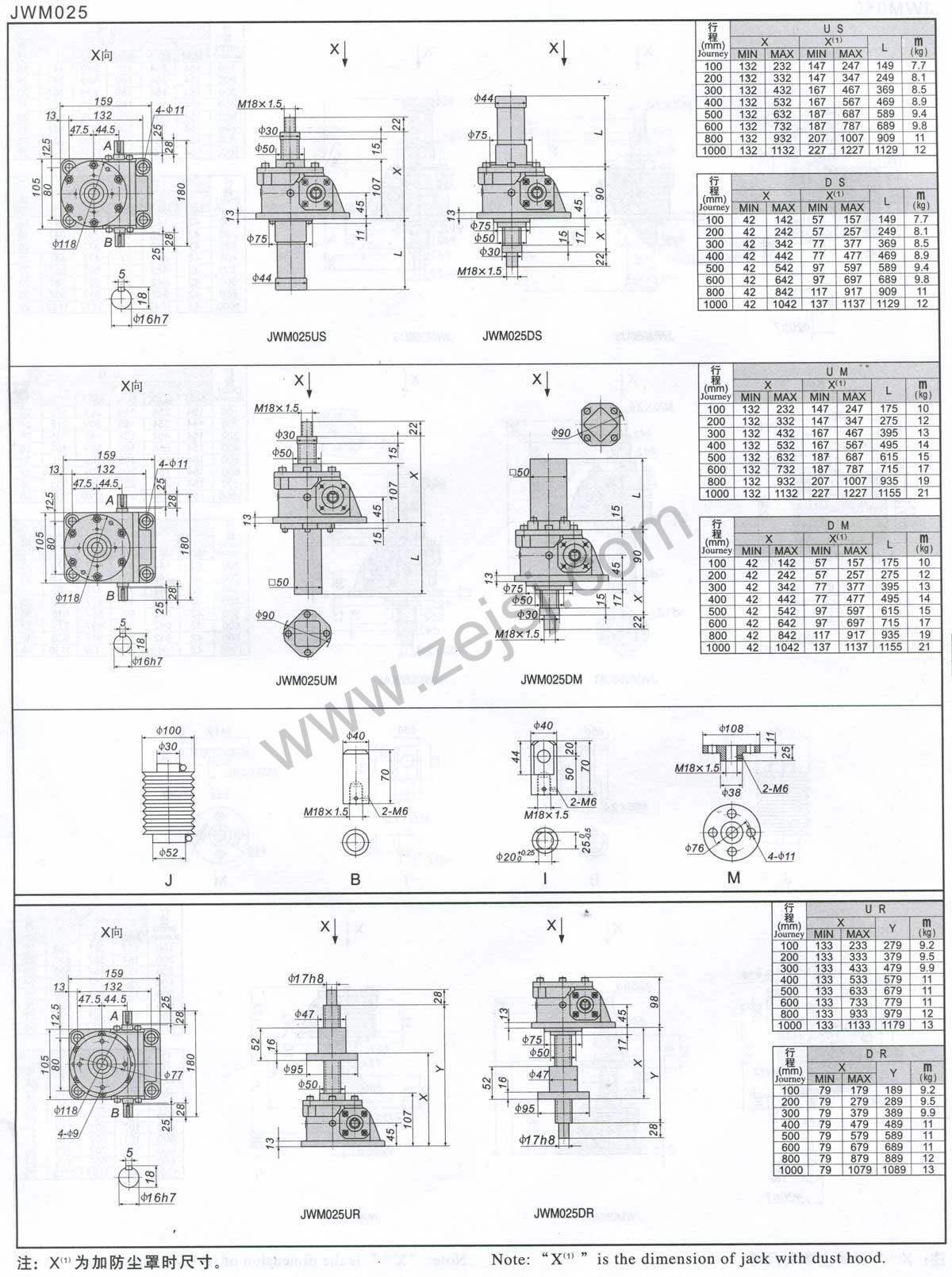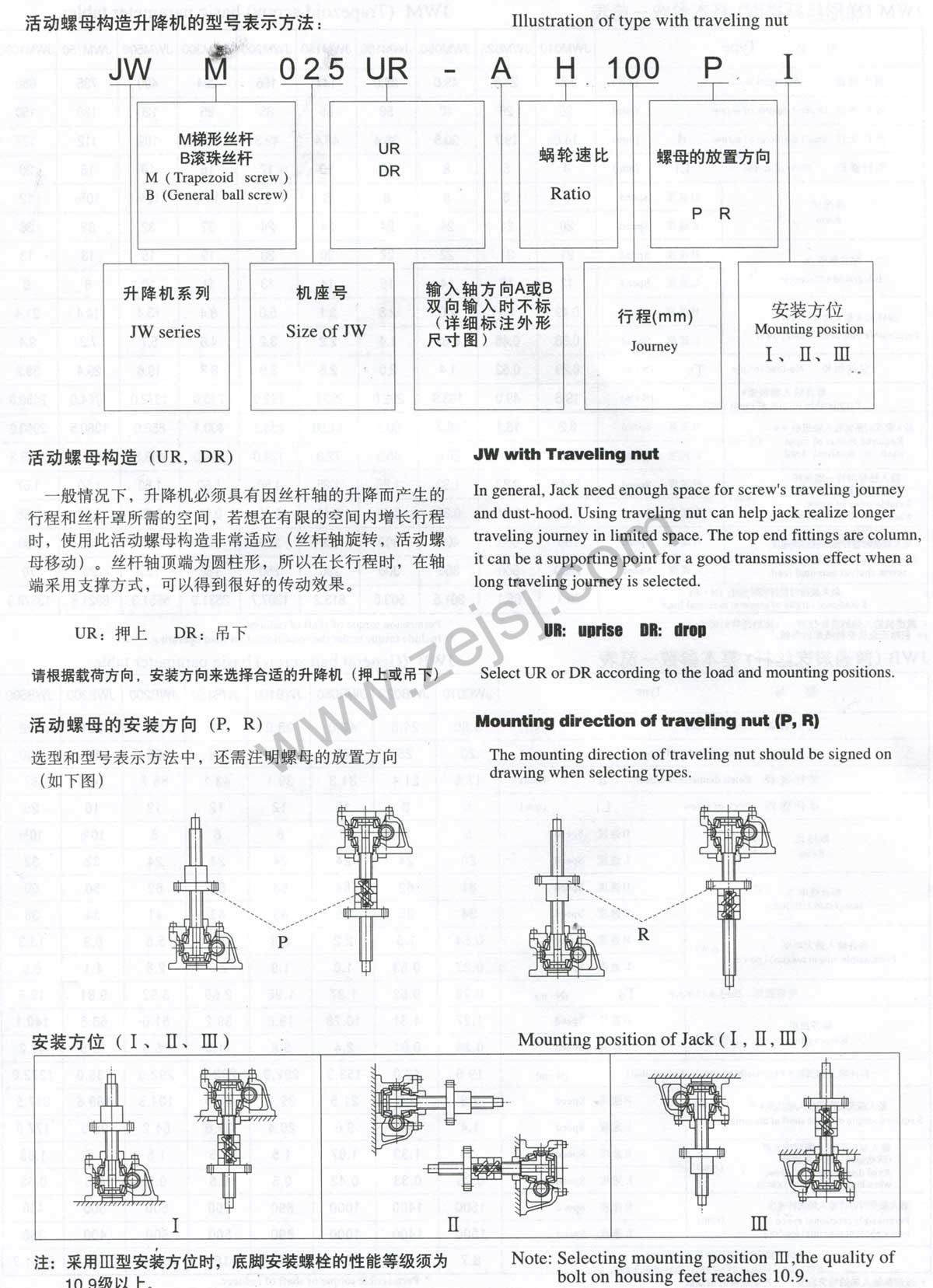 3.JWM(梯形絲桿類型)基本參數(shù)一覽表
