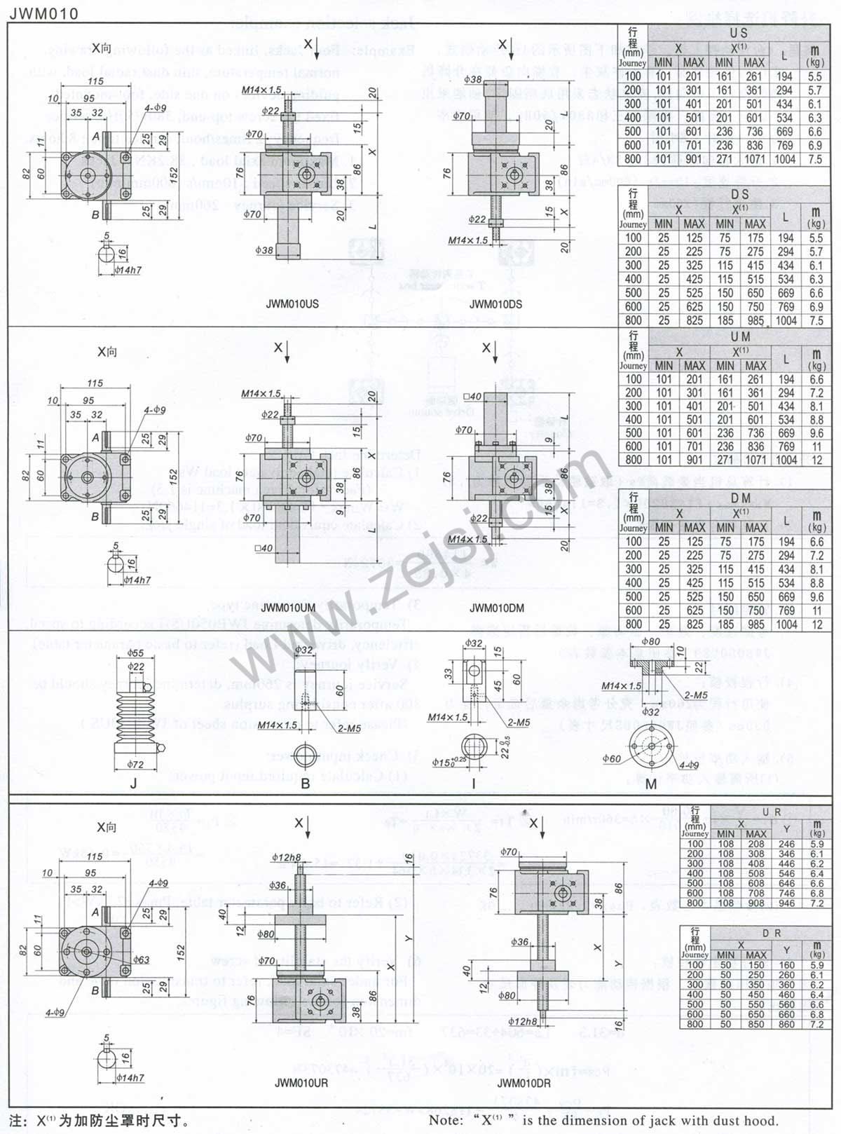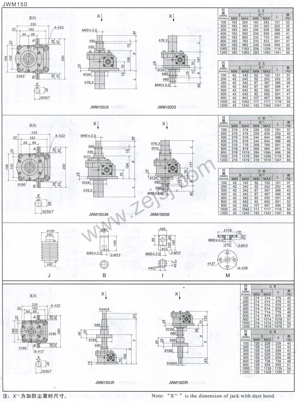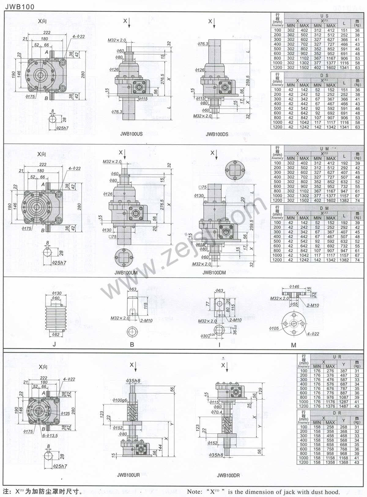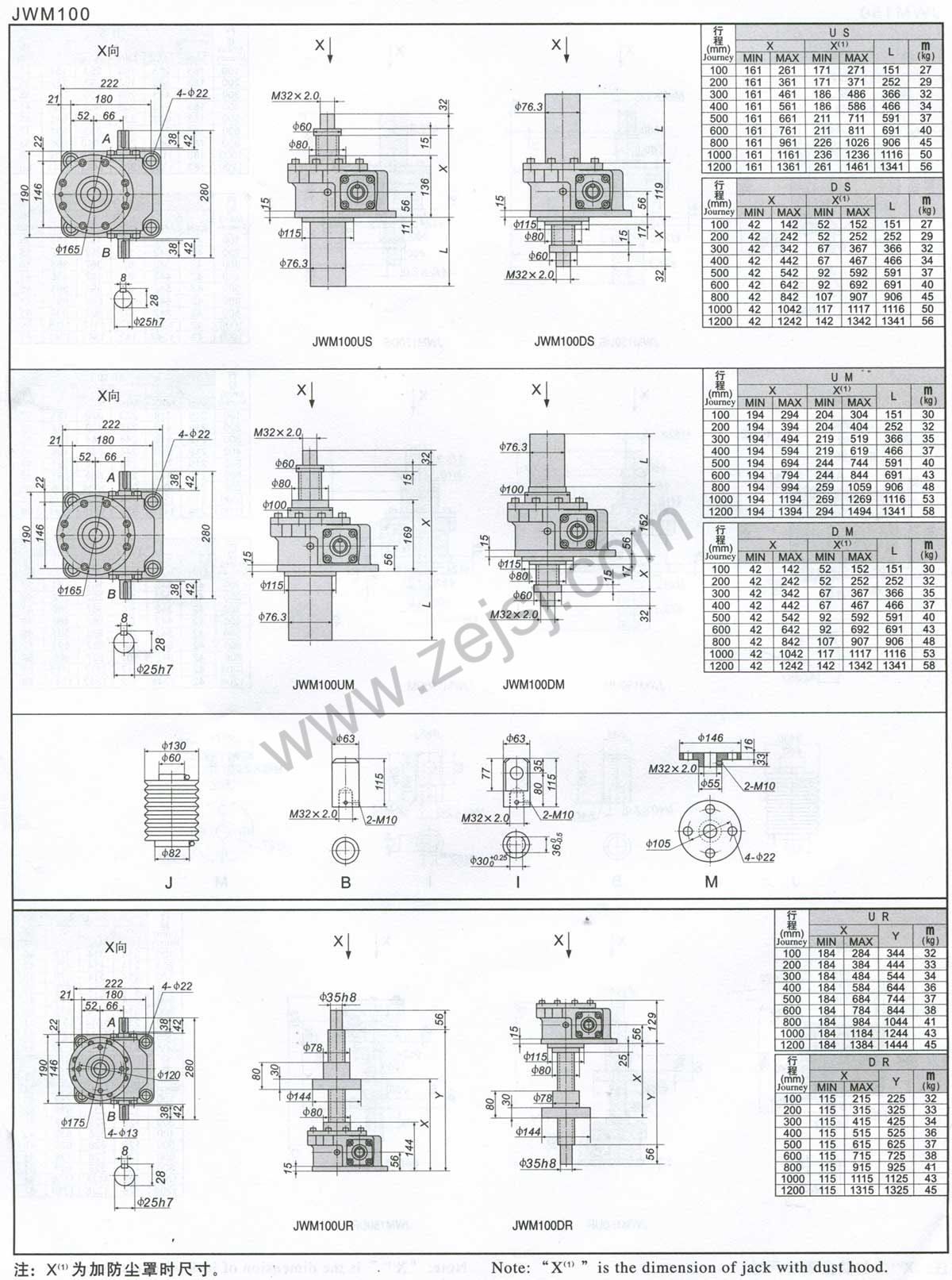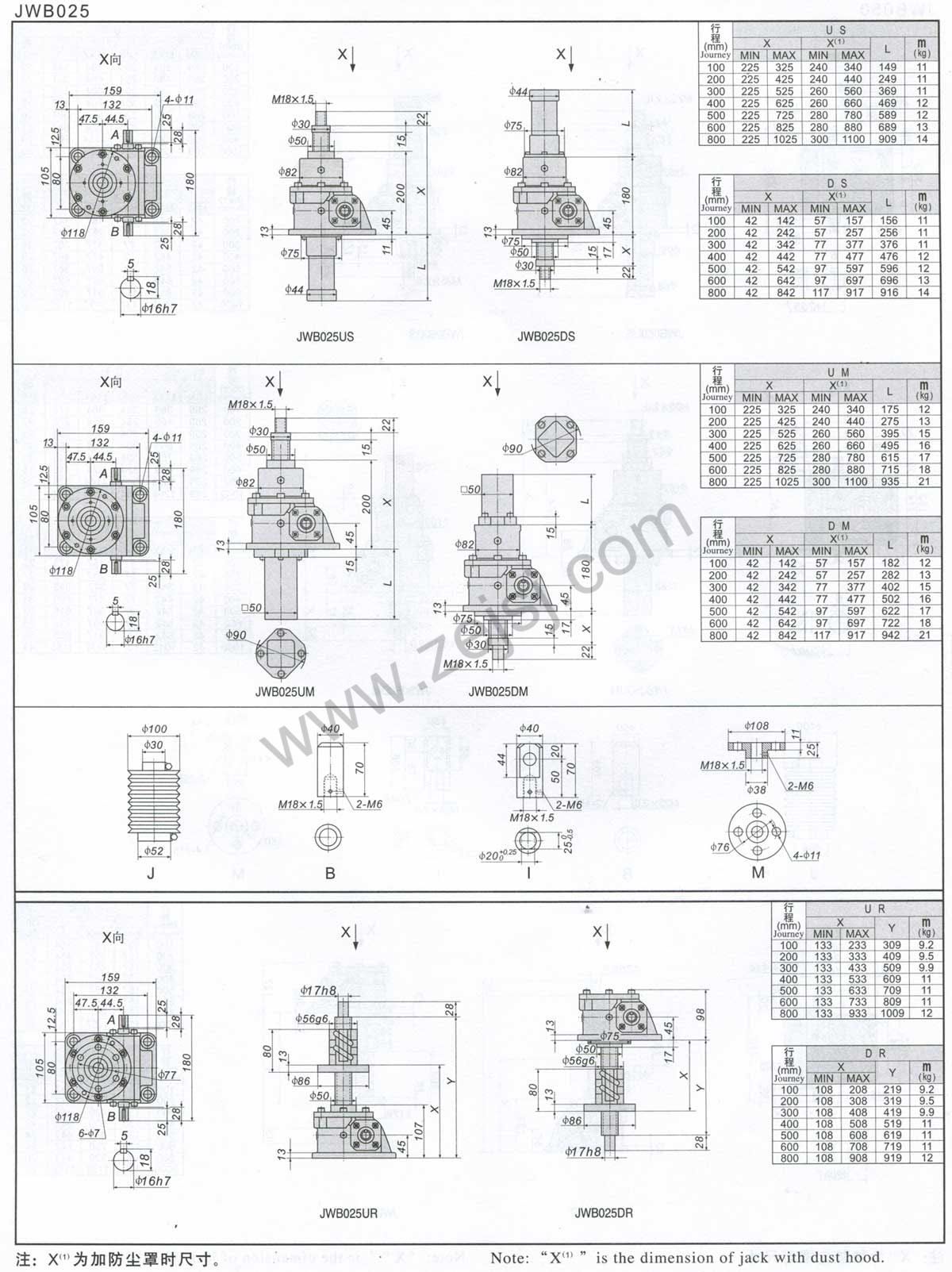 3.JWM(梯形絲桿類型)基本參數(shù)一覽表