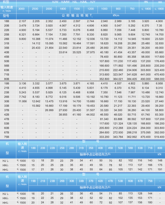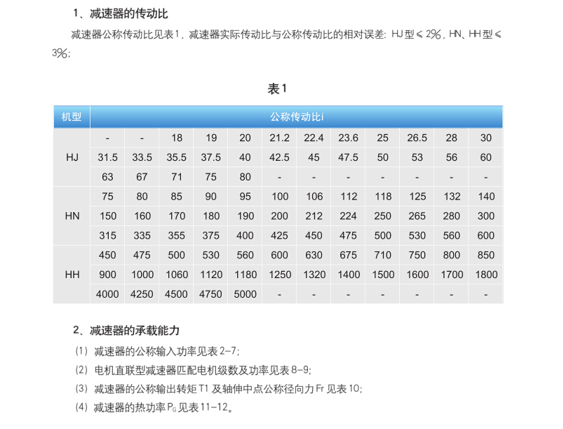 減速機(jī)公稱輸出扭矩T1和公稱軸徑向力Fr