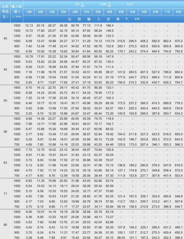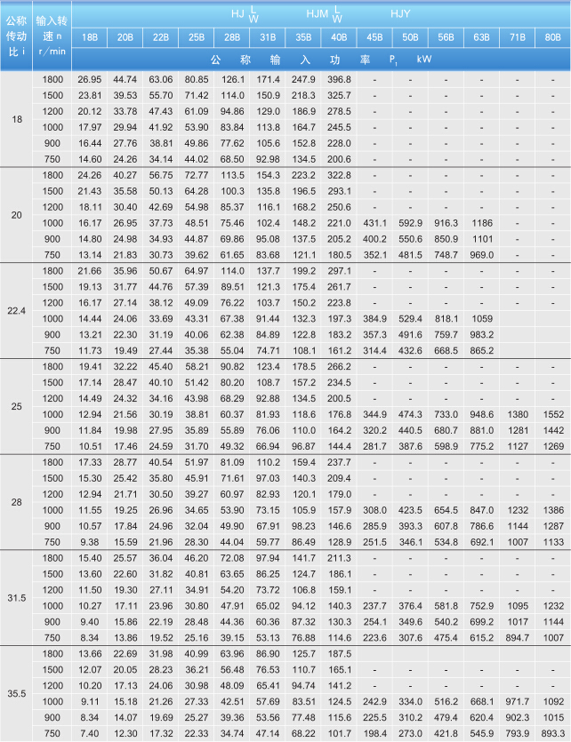 HJW、HJMW、HJL、HJML、HJY18-80B型的額定功率P1