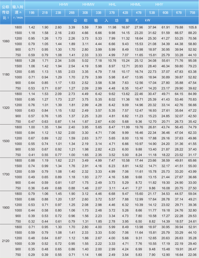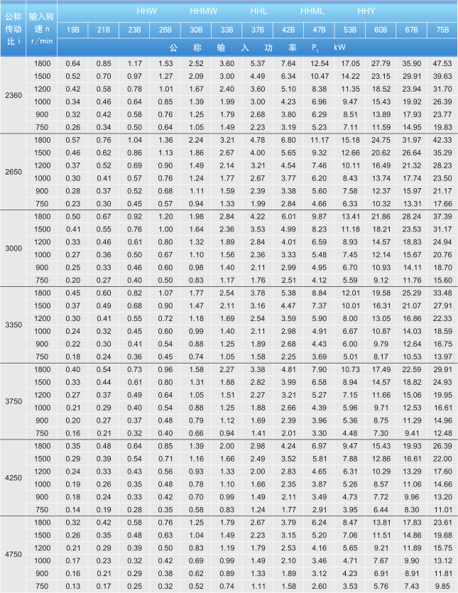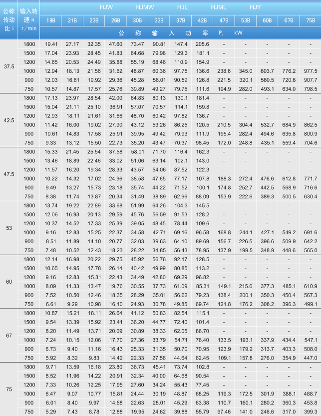 減速機(jī)19-75B型的熱功率PG