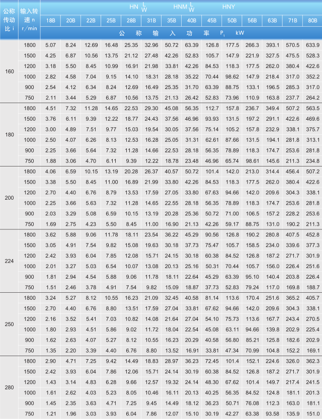 HNW、HNMW、HNL、HNML、HNY18-80B型的額定功率P1