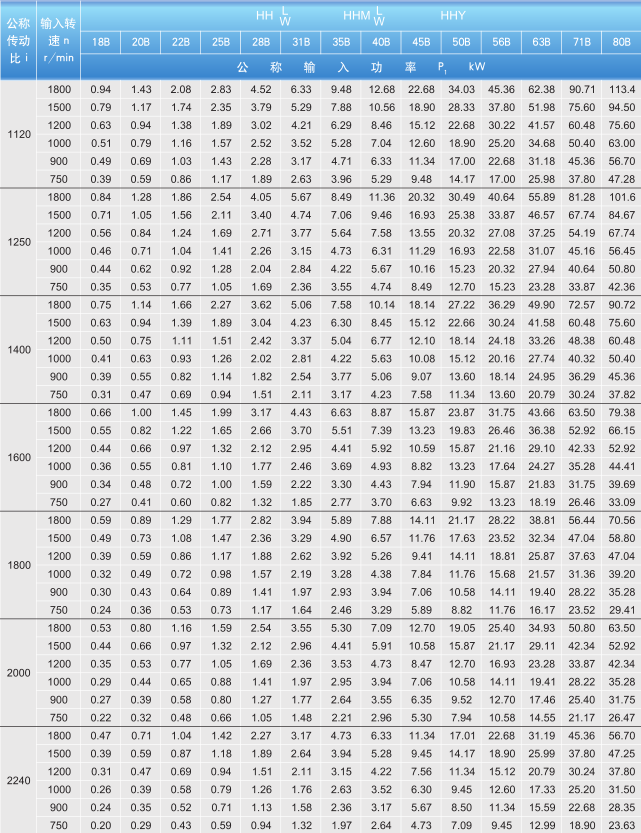 減速機(jī)18-80B型的熱功率PG